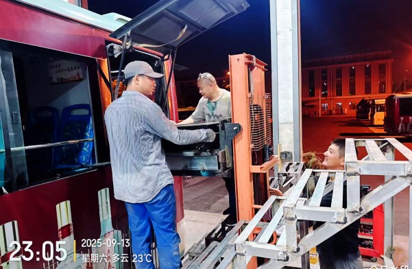 9月上旬,东台市民生公交有限公司30辆气电混动新能源公交车电池包因续航里程即将到期急需更换。接到任务后,厂长杨桂军第一时间成立抢修小组,牵头制定方案,落实修理车间,从人员分工、工具调配到安全保障,每一环节都亲自把关。为不妨碍公交车白天的正常运行,连日来,每当夜幕降临,修理厂内灯光通明。车辆到位后,断电源关高压、拆卸旧电池、搬运新电池、精准安装、反复调试检测……,一系列流程在三车间主任陈根银、组员刘计钢、胡国宇等修理工手中有条不紊地推进。纯电动车电池体积大,重量沉,常常需要大家合力搬运,每更换一个电池包,常常是额头上的汗珠便顺着脸颊滑落,湿透了的工装紧贴在后背,但他们没人喊累,没人退缩,累了就靠在工具箱上歇两分钟,渴了就猛灌几口凉开水,但他们的目光始终聚焦在更换电池包的车辆上。
